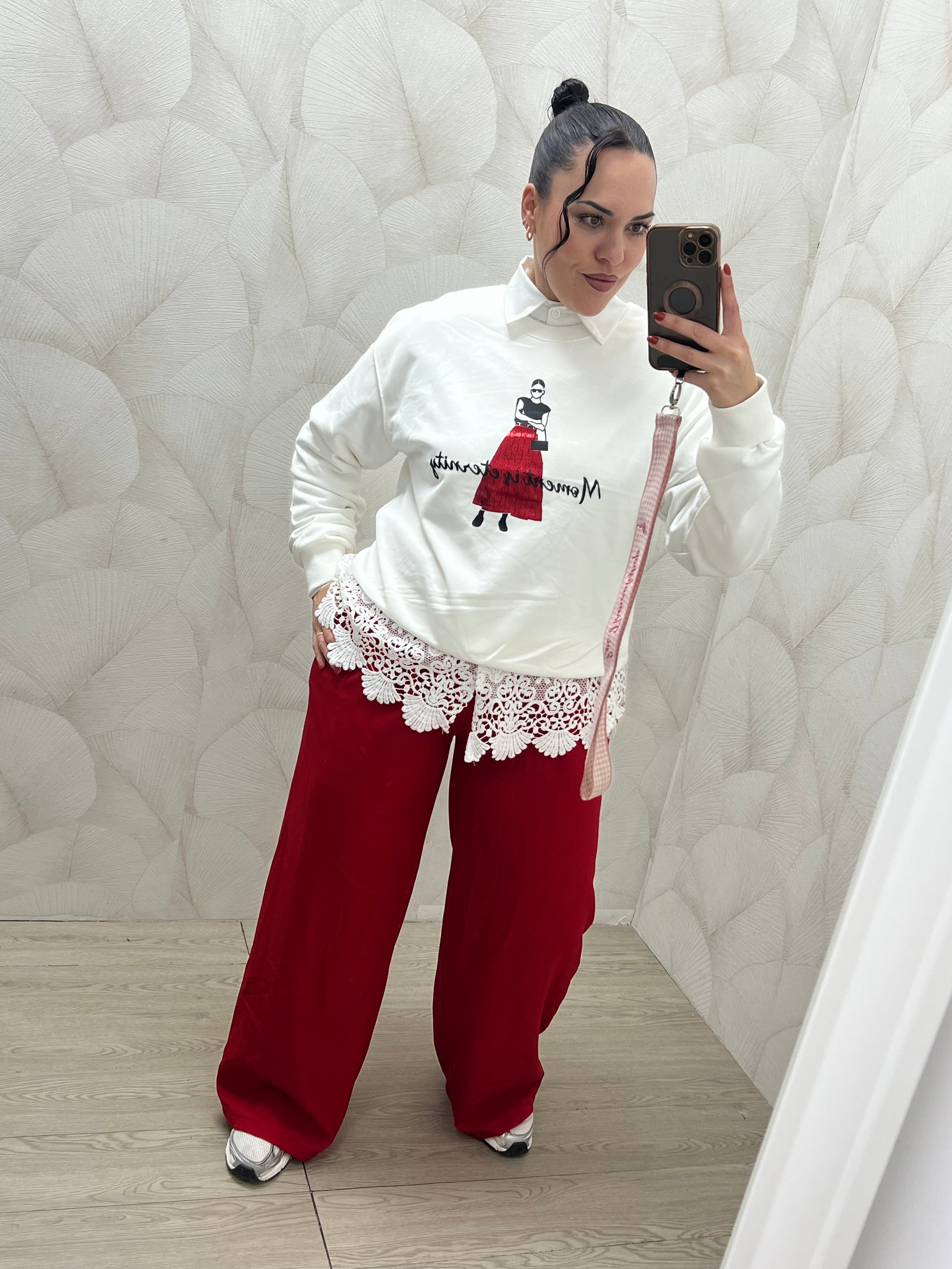 Camisa blanca, con detalle en la parte baja.